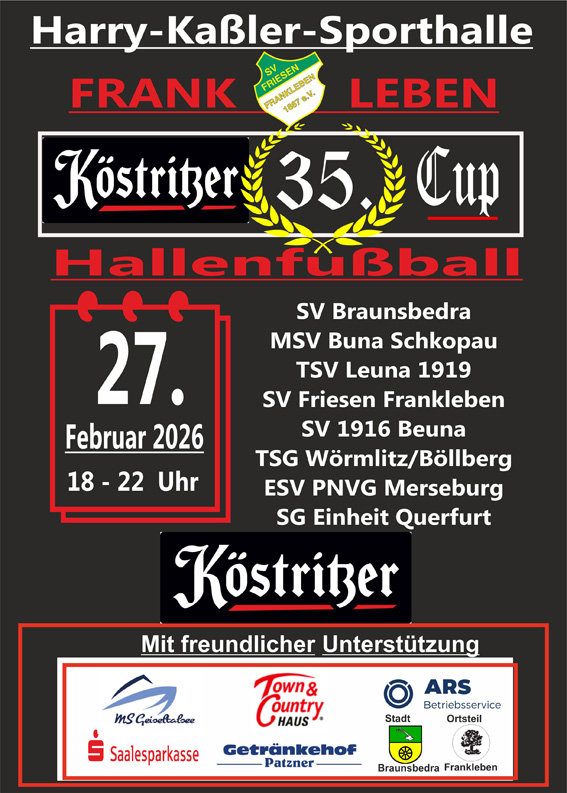 35. Köstritzer-Cup im Hallenfußball am 27. Februar