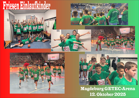 Friesen-Nachwuchs am 12. Okrober Einlaufkinder beim SC Magdeburg zumHandball- Bundesligaspiel gegen Bergischen HC.