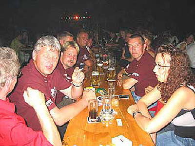 Fußballer feiern in der Harry-Kaßler-Sporthalle