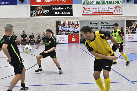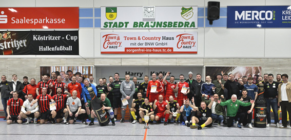 Frankleben/Thomas Wasner. Traditionell am letzten Freitag im Februar verwandelte sich die Harry-Kaßler-Sporthalle in Frankleben wieder in eine Fußballarena: Zum 35. Mal lud der SV Friesen Frankleben 1887 e.V. zum Köstritzer-Cup ein. Freizeitkicker, Senioren und „Alte Herren“ sorgten für einen stimmungsvollen Turniertag – insgesamt 57 Tore begeisterten die Zuschauer. Friesenchef Thomas Wasner begrüßte zahlreiche Gäste, darunter Ehrenmitglieder des Vereins, Franklebens Ortsbürgermeister Günter Küster sowie den Landtagsabgeordneten und Landratskandidaten Sven Czekalla (CDU). Ebenfalls unter den Ehrengästen war der Langeneichstädter Getränkehändler und langjährige Sportförderer Maik Patzner.