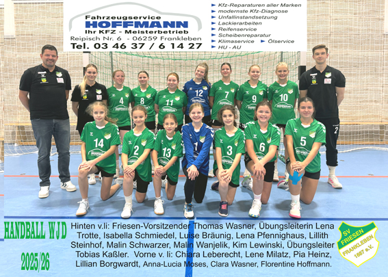 Große Freude bei den Mädels der weiblichen Jugend D, denn der Autoservice Andreas Hoffmann im Franklebener Ortsteil Reipisch hatte wie schon so oft ein Friesen-Handball-Herz.