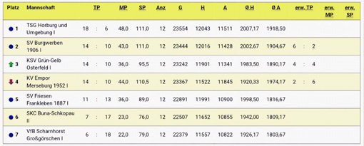 Mit einem beeindruckenden 5:1-Erfolg und einem Gesamtstand von 2018:1944 Holz setzten sich unsere Kegelfrauen souverän gegen die Mannschaft vom SV Geiseltal Mücheln durch.
