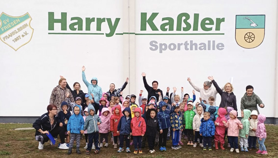 Friesenchef Thomas Wasner und Vize Michael Hofmann organisierten, dass die KITA Mäuseland und die Hortkinder sich auch am Lauf beteiligten. Der fand dann Freitag Vormittag und am Mittag auf der Kampfbahn der Stahlwerker statt.