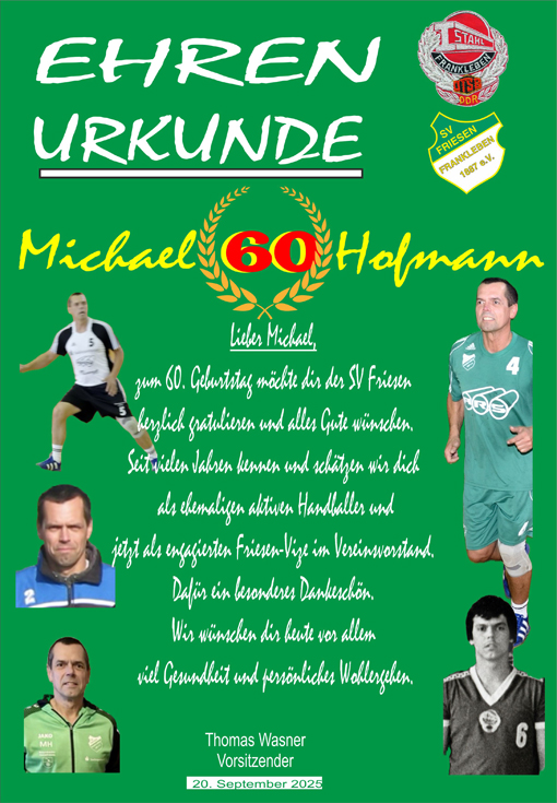 Michael war für die BSG Stahl und die Friesen als erfolgreicher Handballer aktiv. Einige Zeit spielte er auch Fußball bei den Freizeitkickern im Verein. Sportlich unterwegs ist er immer noch mit seinen ehemaligen Handballern bei den "Alten Herren".