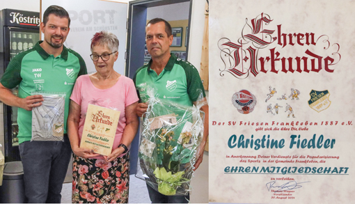 „Es ist beeindruckend zu sehen, wie hier mit viel Herzblut und Engagement ein Ort geschaffen wurde, an dem Menschen jeden Alters zusammenkommen, um sich sportlich zu betätigen“, betonte der Vereinsvorsitzende Thomas Wasner. „Christine Fiedler ist ein herausragendes Beispiel für das, was ehrenamtliches Engagement bewirken kann.“