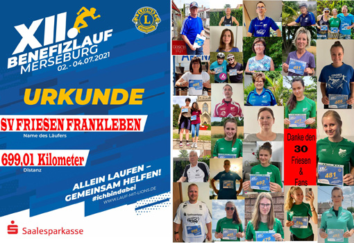 Mit 30 Startern/innen beteiligte sich der SV Friesen Frankleben am diesjährigen Lions-Benefizlauf, der wieder wegen den Coronabestimmungen nicht mit Start und Ziel auf der Merseburger Kliaplatte durchgeführt wurde.